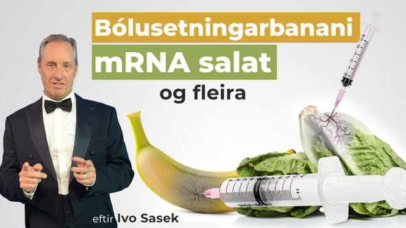 Og nú göngum við skrefinu lengra. Við höfum talað um mjólk og slíkar vörur, um svínakjöt eða nautakjöt, nefndu það sem þú vilt - núna kemur það sama í grænmetinu líka! Sumsé blaðgrænmeti sem mRNA bóluefnisverksmiðjur. Þá getur þú sagt, já ég borða sko ekkert kjöt framar. Nei, þið grænmetisætur, vaknið þið sérstaklega upp: Viðurkenndar heimildir skjalfesta og staðfesta að rannsóknir hafa lengi verið gerðar á framleiðslu bóluefna í erfðabreyttum plöntum. Það hefur lengi verið í gangi. Og þannig sem síðan er einfaldlega hægt að borða til að bólusetja. Það er líka auglýst, alveg opið og ósvífið. Viltu heyra svona auglýsingu? Honum er beint að börnum. Tilvitnun:
