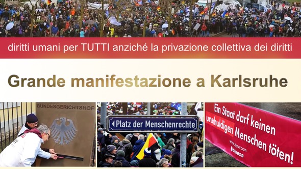 Solo una frase è importante per me, è proprio qui in apertura. E voglio che continuiate a ripetere questa frase a tutte le persone che hanno ancora dei dubbi. Uno Stato non può uccidere persone innocenti. La maggior parte delle persone crede che questa frase si applichi solo ai casi di guerra o alla guerra, ma non è vero. Questa frase si applica anche quando lo Stato obbliga le persone ad assumere nel proprio corpo una sostanza per la quale persino gli istituti ufficiali, come l'Istituto Paul Ehrlich e l'Istituto Robert Koch, affermano che alla fine può avere effetti collaterali fatali. Uno Stato non può uccidere persone, persone innocenti. Questo è il nostro messaggio e cerchiamo di diffonderlo. Grazie mille. Oggi, domenica 10 dicembre 2023, in occasione della 75ª Giornata dei diritti umani, si svolge qui a Karlsruhe un evento storico senza precedenti e molto speciale. Nel corso di una grande manifestazione con comizi e corteo, saranno depositate presso la Procura federale di Karlsruhe 599 denunce penali. Si tratta di denunce contro i responsabili della campagna per l'introduzione legale della vaccinazione obbligatoria nelle professioni sanitarie e per i membri delle forze armate tedesche. L'accettazione dei danni da vaccino e delle morti da vaccino costituisce una violazione della Dichiarazione Universale dei Diritti Umani e della Sezione 7 del Codice Penale Internazionale. Secondo gli organizzatori, non ci sarà riconciliazione finché i carnefici delle misure illegali contro il coronavirus rimarranno impuniti. Per le manifestazioni sono stati annunciati oratori competenti e di alto livello, i cui interventi sottolineeranno la portata dei crimini e l'assoluta necessità di agire. TOBIAS PÖRSEL - AVVOCATO TEDESCO Come avvocato, vorrei dire, caro procuratore, che questo è almeno sufficiente per un primo sospetto. E vorrei anche cogliere l'occasione per ringraziare i medici che, allora come oggi, hanno avuto il coraggio di dire che il signor Lauterbach stava mentendo. E il signor Lauterbach non solo ha mentito, ma ha mentito consapevolmente. Gli effetti collaterali c'erano e ci sono. Ci sono danni da vaccino e nessuno potrà negarlo seriamente. E chi lo fa vuole sottrarsi alle proprie responsabilità. In uno Stato costituzionale funzionante, questo dovrebbe essere delucidato e affrontato. C'è qualcuno qui, che probabilmente quasi nessuno conosce, che a volte va in giro in autobus. È meglio che si presenti, a volte è un po' timido. Vorrei chiedere a Ralf Ludwig di unirsi a me per un momento. RALF LUDWIG - AVVOCATO TEDESCO Sì, salve, grazie a tutti voi per essere qui e per sostenere questa causa. Nella primavera del 2021, a Stoccarda, ho detto che avremmo istituito questo centro, che ci avremmo lavorato e che non ci saremmo fermati fino a quando i responsabili delle misure contro il coronavirus non fossero stati chiamati a risponderne. E inizieremo oggi con le accuse penali. Oggi abbiamo sul palco molti grandi colleghi, molti avvocati che hanno rappresentato i vostri interessi per molti anni, che hanno viaggiato da un tribunale all'altro per molti anni, cercando di salvare e garantire in qualche modo lo stato di diritto. Vorrei ringraziare questi colleghi che sono qui sul palco oggi. Molti di loro sono anche qui davanti al palco e hanno svolto un lavoro davvero incredibile. Abbiamo quindi molte, molte persone in gamba e penso sempre che in un Paese in cui un gran numero di avvocati si alza in piedi e dice che ciò che sta accadendo qui non è giusto, ci deve essere qualcosa che non va. Io stesso vorrei trattenermi un po' oggi, perché credo che l'attenzione debba essere rivolta ai nostri colleghi che da anni si battono per i vostri diritti, per i nostri diritti, non solo in Germania, ma anche in Austria e in Svizzera. C'è solo una frase che per me è importante, ed è qui in testa. E vorrei che continuaste a ripetere questa frase a tutte le persone che hanno ancora dei dubbi. Uno Stato non può uccidere persone innocenti. La maggior parte delle persone crede che questa frase si applichi solo ai casi di guerra o alla guerra, ma non è vero. Questa frase si applica anche quando lo Stato obbliga le persone ad assumere nel proprio corpo una sostanza per la quale persino gli istituti ufficiali, come l'Istituto Paul Ehrlich e l'Istituto Robert Koch, affermano che alla fine può avere effetti collaterali fatali. Uno Stato non può uccidere persone, persone innocenti. Questo è il nostro messaggio e cerchiamo di diffonderlo. Grazie mille. THOMAS SEITZ - MEMBRO DEL BUNDESTAG Non c'è stata una crisi a causa del Covid, la crisi è stata il risultato delle misure adottate contro il Covid. La vera crisi non è stata innescata da un virus, ma dalla politica. Era un periodo di stato di emergenza legale, anche se la Legge fondamentale non riconosce uno stato di emergenza civile dovuto a disastri naturali o epidemie. Mentre i rami legislativo ed esecutivo si sono superati l'un l'altro nelle loro eccessive violazioni dei diritti fondamentali, i tribunali hanno quasi sempre fallito nella loro funzione di guardiani della libertà e dei diritti fondamentali. La magistratura ha quindi prima o poi approvato acriticamente quasi tutte le imposizioni legali, anche se in Germania non c'era un eccesso di mortalità. Almeno fino all'inizio della campagna di vaccinazione con un vaccino che non era un vaccino ma una terapia genica sperimentale. La mia frase preferita di quel periodo, durante la plenaria del Bundestag tedesco, è che gli ambulanti difendono lo stato di diritto e la loro criminalizzazione è sbagliata. DR. MICHAEL BRUNNER - AVVOCATO AUSTRIACO A partire dal marzo 2020, tutto ciò che fino ad allora aveva caratterizzato uno Stato costituzionale democratico e lo stato della scienza medica è stato ribaltato. Chiunque si sia opposto è stato diffamato, insultato e perseguitato. I medici hanno perso l'autorizzazione a praticare la medicina, sono stati licenziati dall'università e perseguitati 