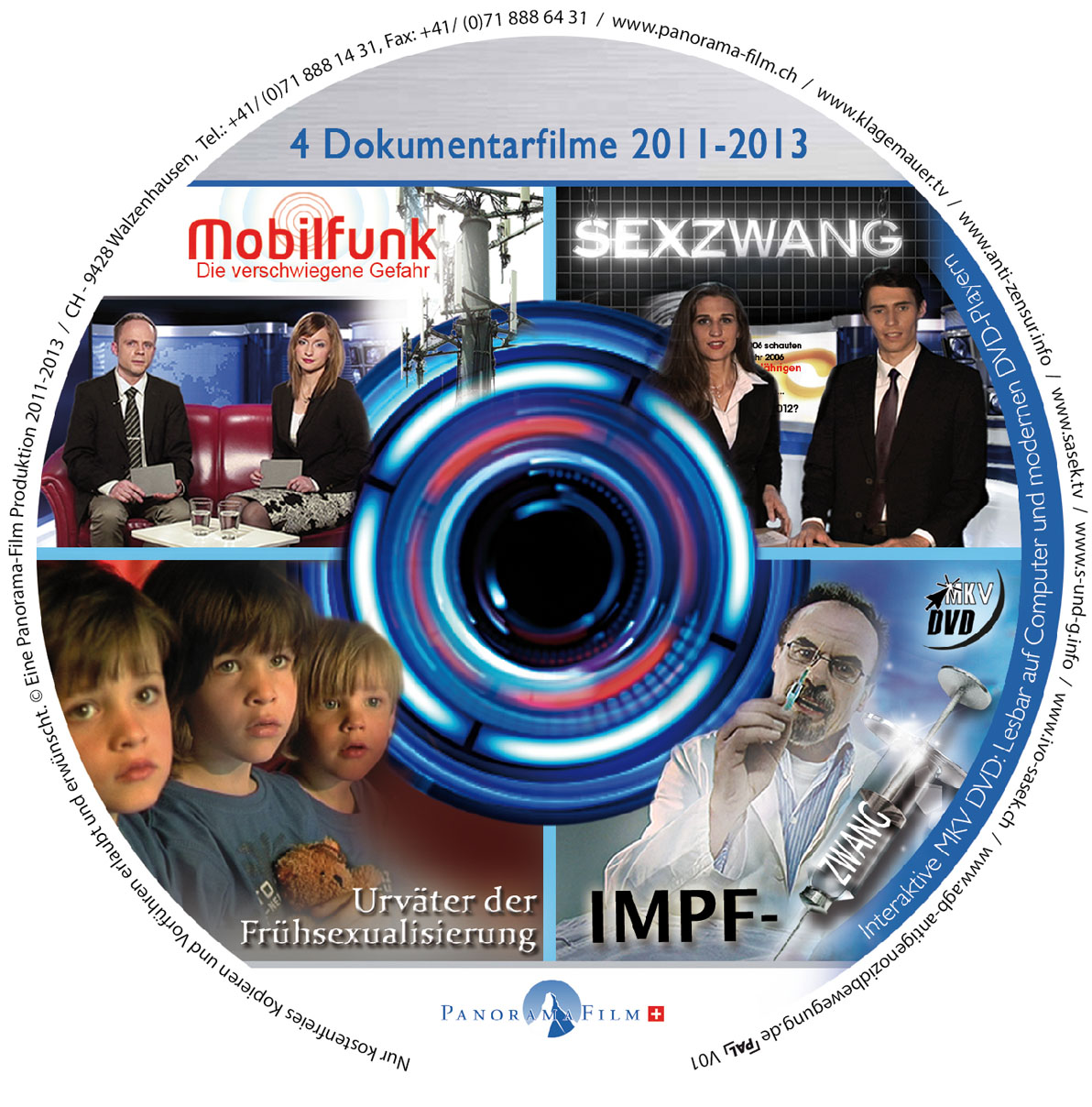 MKV-DVD: 4 Dokumentarfilme (2011-2013)4 Dokumentarfilme von den Jahren 2011-2013 auf einer DVD. Abspielbar mit einem DVD-Player und am PC. Dateigrösse der DVD: 7.4 GB |