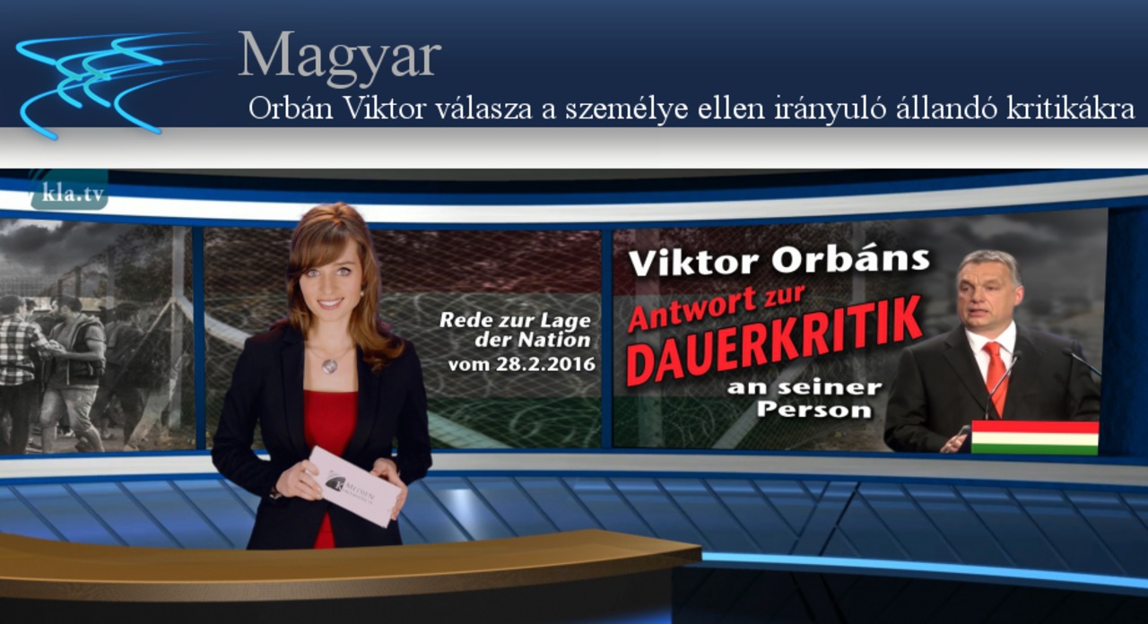 Orbán Viktor válasza a személye ellen irányuló állandó kritikákra (nemzeti évértékelő beszéde 2016 február 28-án) 2010 óta - mióta Orbán Viktort miniszterelnökké választották - folyamatosan a támadások kereszttüzében áll. Legyen szó akár menekültpolitikájáról, többek között a 4 méter magas 175 km hosszú kerítésről a szerb határon, vagy akár legyen szó a 2010-ben hatályba léptetett reformokról, mint például a médiatörvény vagy az oktatási reform, állandóan élesen bírálták Orbán Viktort. De mi rejtőzik ezek mögött a folyamatosan ismétlödő kritikák mögött és mennyire indokoltak? Orbán Viktor tizennyolcadik évértékelő beszéde, 2016 február 28-án, tájékoztatást ad és rámutat a nagyobb összefüggésekre. Orbán alapvető tényként közli azt, hogy Európában két ellenkezö tábor létezik. Orbán megkülönbözteti egyrészt az úgynevezett unionistákat, valamint a szuverenistákat. Az unionisták az Európai Egyesült Államokat akarják létrehozni – miközben a szuverenisták a szabad nemzetek Európáját kívánják létrehozni. Az Unionisták az összes EU-tagállamban kötelező betelepítési kvótát akarnak bevezetni. Az EU kvóta szerint a következő két évben Görögországból és Olaszországból 160.000 menekültet kellene a többi EU-tagállamban elosztani. A másik oldal, a szuverenisták viszont hallani sem akarnak erről. Ezért akarja Orbán miniszterelnök, hogy az európai bevándorlási rendszer kötelező betelepítési kvótájáról az ország polgárai szavazzanak. Orbán ezt így indokolja: efféle kvótákat meghatározni, anélkül hogy a polgárokat megkérdezék, hatalommal való visszaélést jelentene. Orbán Viktor azután beszédében világosan kifejtette hogy miért kellene a kvóta határozatot visszautasítni: nem a veszélyeztetett menekültek felvétele ellen szólt, hanem arról, hogy az EU számára ez egy opció lehetne, idézem: „hogy aki más földrészekről és más kultúrákból ide akar jönni, azt ellenőrzés nélkül be lehessen engedni“. A nemzetállamoknak esélyük sem lenne a „veszélyes és bűnöző elemek kiszűrésére“. További idézet Orbántól : „Amikor nagy tömegek új hazát keresnek, az óhatatlanul konfliktusokhoz vezet, mert olyan helyet akarnak elfoglalni, ahol valakik már élnek, berendezkedtek, és akik meg akarják védeni az otthonukat, a kultúrájukat és az életformájukat“. Így Orbán a menekültek többségét is áldozatnak látja: áldozatai hazájuk összeomló kormányainak, áldozatai rossz nemzetközi döntéseknek, áldozatai az embercsempészeknek. Orbán úgy látja hogy „Európa jövőjét elsősorban nem azok veszélyeztetik, akik ide akarnak jönni, hanem, idézem: „azok a politikai, gazdasági és szellemi vezetők, akik Európát megpróbálják átalakítani“. Ezeken az átalakításokon keresztül akarják elérni, hogy elmosódjanak „a határvonalak nemzet és nemzet, kultúra és kultúra, férfi és nő, jó és rossz, szent és profán, szabadság és felelősség, jó szándék és jó cselekedetek között“. Orbán Viktor úgy látja, hogy a korlátlan népvándorláson keresztül, melynek új időszakasza 2015-ben kezdődött el, az EU tagállamok szuverenitása veszélybe kerülhet. Orbán még hozzáfűzte: veszély fenyegeti Magyarország verejtékkel átküzdött pénzügyi stabilitását, az éppen csak megindult gazdasági felzárkózását, a gondosan felépített nemzeti külpolitikáját, a helyreállított közrendjét és a terrormentes közbiztonságát; és veszély fenyegeti Magyarország lassan ismét magára találó nemzeti kultúráját is. Orbán Viktor alapvetően semmi mást nem hangsúlyozott, mint hogy Magyarország egy szuverén ország és hogy kormánya mindent megtesz azért, hogy ezt megtanítsa „Brüsszelnek, az embercsempészeknek és a migránsoknak is“. Magyarország területére Orbán szerint csak úgy lehet belépni, ha betartják a törvényeit és engedelmeskednek a hatóságoknak. Orbán évértékelő beszéde egyértelművé teszi, hogy az európai dominanciáért folyik az erőpróba. Ez egy erőpróba az EU között, aki egyeduralomra törekszik, és a tagállamok között, melyek a nemzeti szuverenitásukat és identitásukat kívánják megőrizni és védelmezni. Ezért nem meglepő, hogy pontosan ezek a tagállamok ismételten a kritika kereszttüzébe kerülnek, mintha a „szuverenitás“ az emberi jogok megsértése lenne, miközben ez emberi jogunk. Orbán Viktor azt mondta, hogy Magyarország kormányának „az európai demokrácia nagyobb dicsőségére” szembe kell néznie a cenzúrával, zsarolással és a fenyegetésekkel. Egyes tagállamok sajtója nyilvánvaló hazugságokat terjeszt. Minden negatív jelentést Magyarországról ebből a szempontból kell tanulmányozni és megvizsgálni. " Orbán Viktor teljes beszéde magyarul – amit érdemes tanulmányozni – a következő link alatt található: http://www.miniszterelnok.hu/orban-viktor-evertekelo-beszede/