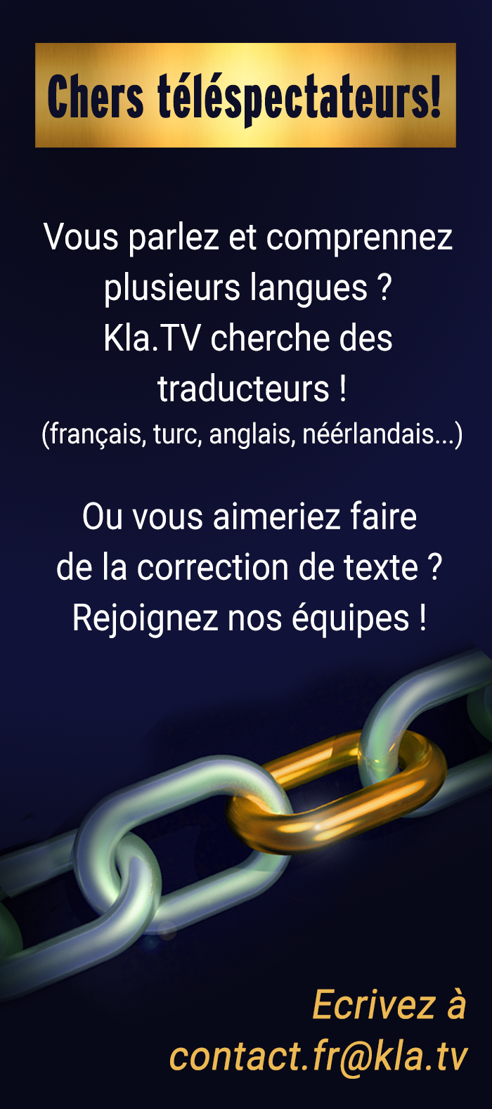 Si vous aussi vous souhaitez faire partie du réseau indépendant de Kla.TV, inscrivez-vous dès maintenant : www.kla.tv/vernetzung