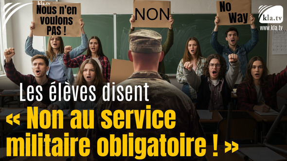 Le 5 décembre, le Bundestag allemand se prononcera sur la loi relative au service militaire obligatoire. Si le Bundestag l'approuve, tous les hommes âgés de 18 ans devront alors se présenter à la visite médicale. Beaucoup de jeunes ont le sentiment intuitif que la propagande guerrière actuelle ne peut pas mener à la paix. C'est pourquoi une résistance s'organise contre ce projet de loi sur le service militaire obligatoire ! « Le 5 décembre, nous n'irons pas à l'école », peut-on lire sur le site Internet de la plateforme « Grève scolaire contre le service militaire obligatoire ». L'initiative appelle à une grève scolaire nationale. Dans 86 villes, les élèves ne se rendront pas à l'école le 5 décembre afin de dire non à « l'entraînement et à l'obéissance » ainsi qu'à « l'apprentissage du meurtre ». Avec cette action, les jeunes veulent se faire entendre. « Que ce soit dans les journaux télévisés ou les débats télévisés, presque tout le monde en parle et en discute. Mais personne ne nous parle. Personne ne nous demande ce que nous voulons. Personne ne veut savoir ce que nous en pensons », peut-on lire sur le site Internet. « C'est pourquoi nous les forçons à nous écouter pour comprendre pourquoi nous sommes contre le service militaire obligatoire ! » « Nous ne voulons pas finir comme chair à canon ! » « En cas de guerre, nous ne voulons en aucun cas tirer sur d'autres jeunes de notre âge qui seraient appelés sous les drapeaux. » L'extrait suivant d'une émission de Kla.TV diffusée en mai 2017 montre les conséquences imprévisibles que le service militaire peut avoir pour les appelés : Journée de l’objection de conscience – « Non ! Nous ne voulons pas de guerre ! » www.kla.tv/10645 Même si actuellement le service militaire n’est pas obligatoire en Allemagne et si les jeunes hommes ne sont pas concernés par cette décision, il faut que chacun connaisse les cruels effets secondaires d’une guerre. A côté d’innombrables morts, blessés et estropiés que sans exception toutes les guerres entraînent, il existe en plus des conséquences qui ne sont pas négligeables. Par exemple : Selon le témoignage du député américain Robert Filner il y a plus de vétérans de la guerre du Vietnam qui se sont suicidés que de soldats américains qui ont été tués (58 000) pendant cette même guerre du Vietnam. Malgré le vote en 2007 du droit à la prévention des suicides de soldats après des opérations militaires, le nombre des suicides continue à augmenter. De ce point de vue il est clair que les soldats restent marqués après leurs opérations militaires. Les séquelles tardives des blessures, des syndromes de stress post-traumatique, des dépressions, le sentiment de culpabilité, l’alcool et les drogues deviennent des accompagnateurs quotidiens des vétérans. Tous les gouvernements savent bien ce qu’ils infligent à leurs soldats ou à leurs mercenaires quand ils leur donnent un ordre de marche. Et pourtant certains pays, en particulier les USA, acceptent d’infliger ce sacrifice surtout actuellement comme en Syrie, en Ukraine, en Corée du nord, au Yémen ou en Somalie. Au nom de la démocratie et des droits de l’homme, le droit le plus important – le droit de vivre – va être foulé aux pieds. Ça, c’est une raison de plus d’attirer l’attention sur la journée de l’objection de conscience surtout dans les pays qui ne connaissent la guerre que par la télévision. La conclusion de la journée internationale de l’objection de conscience doit être : « Non ! Nous ne voulons pas de guerre ! »