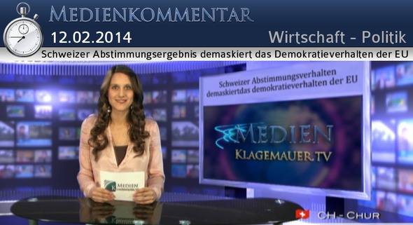Liebe Zuschauerinnen und Zuschauer von Klagemauer-TV. Gerne begrüssen wir Sie heute zu unseren Medienkommentaren zum derzeit täglich in den Medien diskutierten, anscheinend revolutionären Abstimmungsergebnis der Schweizer „Masseneinwanderungsinitiative“. Das Thema beschäftigt auch unsere Zuschauer. Als Gegenstimme zu den sehr einseitigen Berichterstattungen, man könnte fast sagen, manipulativ angstschürenden Kommentaren der Mainstreammedien, hier 2 Sichtweisen von KTV-Zuschauern, die mit der Bitte um Veröffentlichung bei uns eingegangen sind. Hier der 1. Kommentar „Die EU droht der Schweiz mit harten Sanktionen. Weil die Schweiz am vergangenen Wochenende in einer direktdemokratischen Volksabstimmung entschieden hat, das Heft in Einwanderungsfragen künftig wieder selbst in die Hand zu nehmen, reagiert Brüssel brüskiert. Der EU-Komissionspräsident Barroso kündigte gegenüber der Nachrichtenagentur Reuters heute ernste Konsequenzen an. Obwohl die Schweiz lediglich zur Gesetzeslage, wie sie bis zum Jahr 2003 erfolgreich umgesetzt wurde, zurückkehren wird, hetzen die angeblich demokratieliebenden europäischen Medien nun in beispielloser Arroganz gegen die Schweiz. „Die spinnen, die Schweizer“, titelt die Rheinische Post, während sie folgenden Kommentar veröffentlicht: „Bei überschaubaren kommunalen Fragen mögen Volksentscheide gut sein. Komplexe Fragen sind im Parlament einer repräsentativen Demokratie weit besser aufgehoben“. Nach der Ansicht der Rheinischen Post sollte das Volk als oberster Souverän also in den wirklich gewichtigen Fragen besser bevormundet werden. Geschätzte Schweizerinnen und Schweizer, lassen Sie sich durch das europäische Mediengewitter der vergangenen Tage nicht verunsichern. Die überwältigende Mehrheit der europäischen Bürger beneidet die Schweiz um ihre direkte Demokratie. Wer sich in den Kommentarforen sämtlicher grosser Nachrichtenportale umsieht, wird feststellen, dass die positive Resonanz auf den mutigen Schritt der Schweiz deutlich überwiegt. Hier stellvertretend für viele andere positive Stellungnahmen die zwei meistgelobten Leser-Kommentare zum Artikel „Schweizer Votum verstört Europa“ in der Süddeutschen Zeitung: „Eine Volksabstimmung zum Thema Zuwanderung wäre in Deutschland und anderen EU-Ländern sicher ähnlich ausgefallen wie in der Schweiz. Immer mehr EU Bürger können die EU Politik nicht mehr nachvollziehen.“ „Ich möchte hiermit anmerken, dass auch ich zu Europa gehöre und nicht verstört bin, sondern vollstes Verständnis habe und die demokratische Entscheidung der (wenn auch knappen) Mehrheit akzeptiere. Es wäre daher sachlich korrekt, wenn die Überschrift (ihres Artikels) entsprechend abgeändert würde in "Schweizer Votum verstört manche Europäer, andere nicht". Mit diesem originellen Wortspiel gebe ich nun weiter an meine Kollegin, zum 2. zugesandten Kommentar: